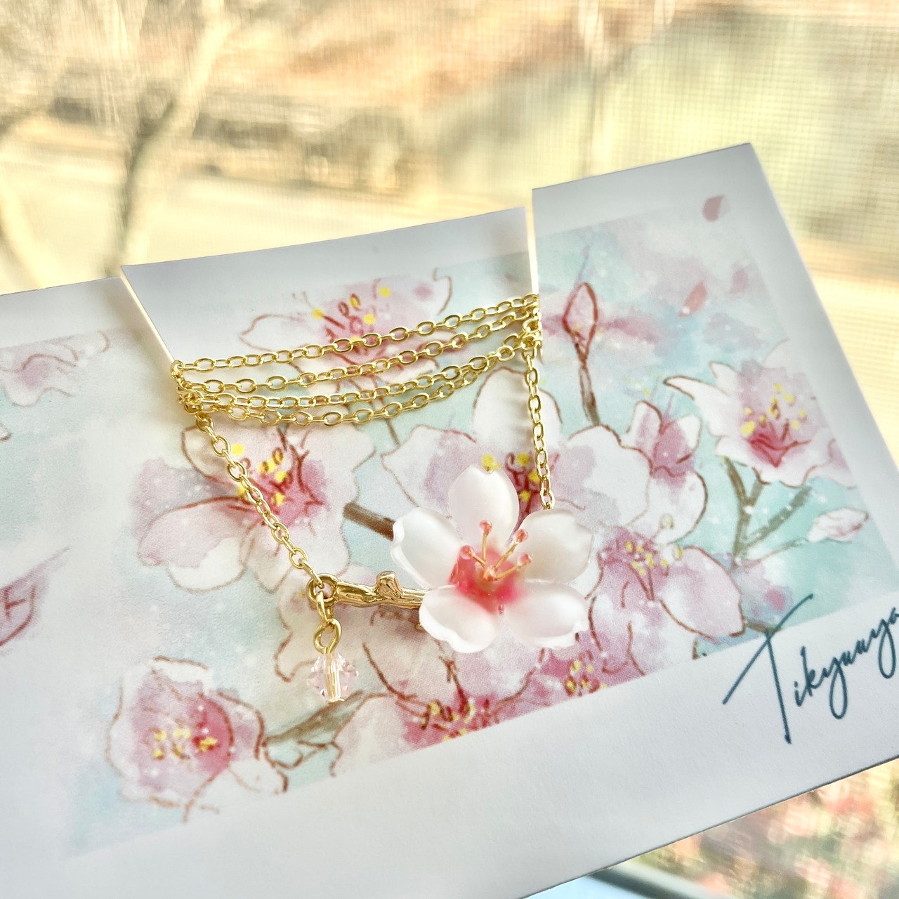 桜の花びらには表面にマット加工を施しておりますので、ふんわりとした雰囲気に仕上がっております。