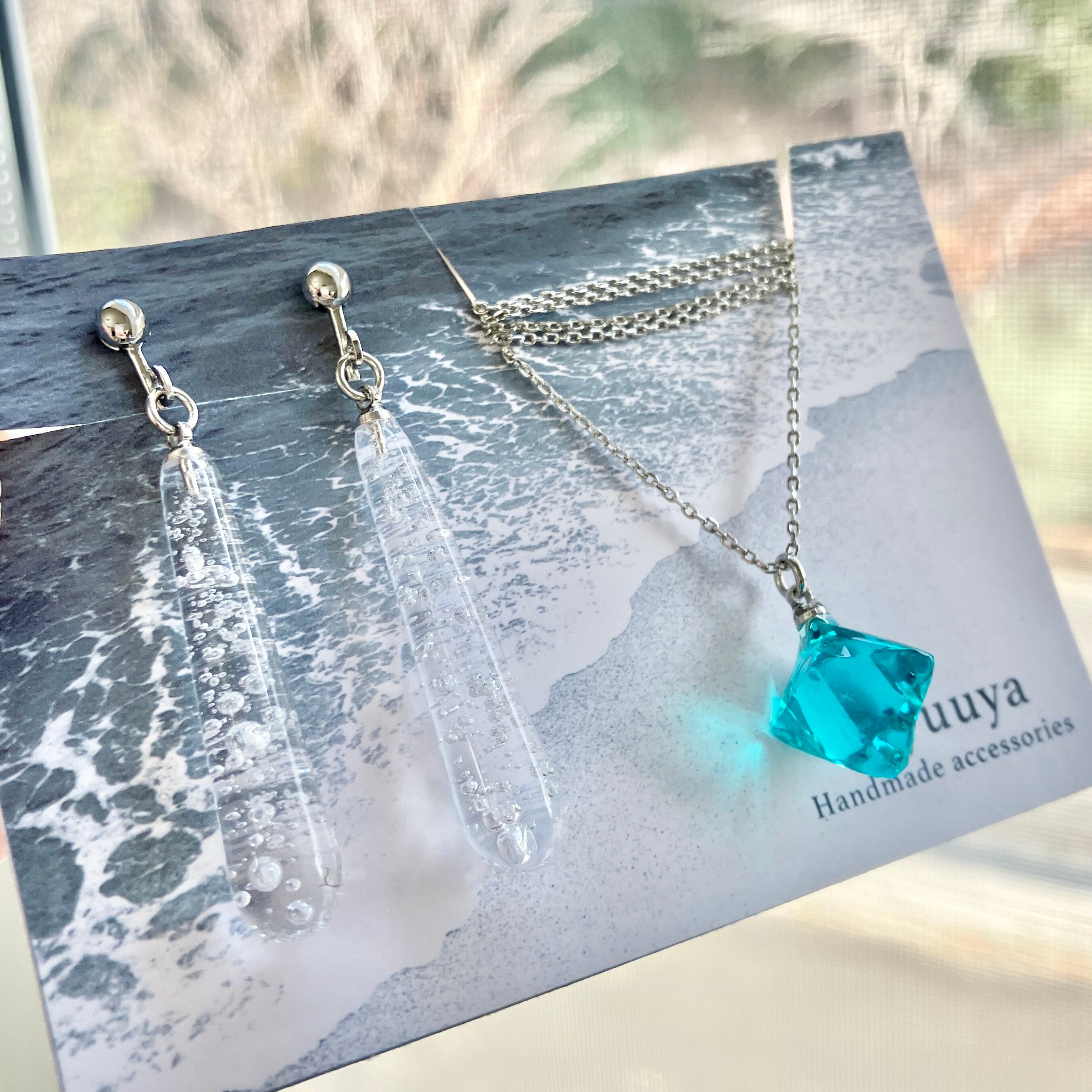 ドロップイヤリングと鉱石ネックレス 海のかけら