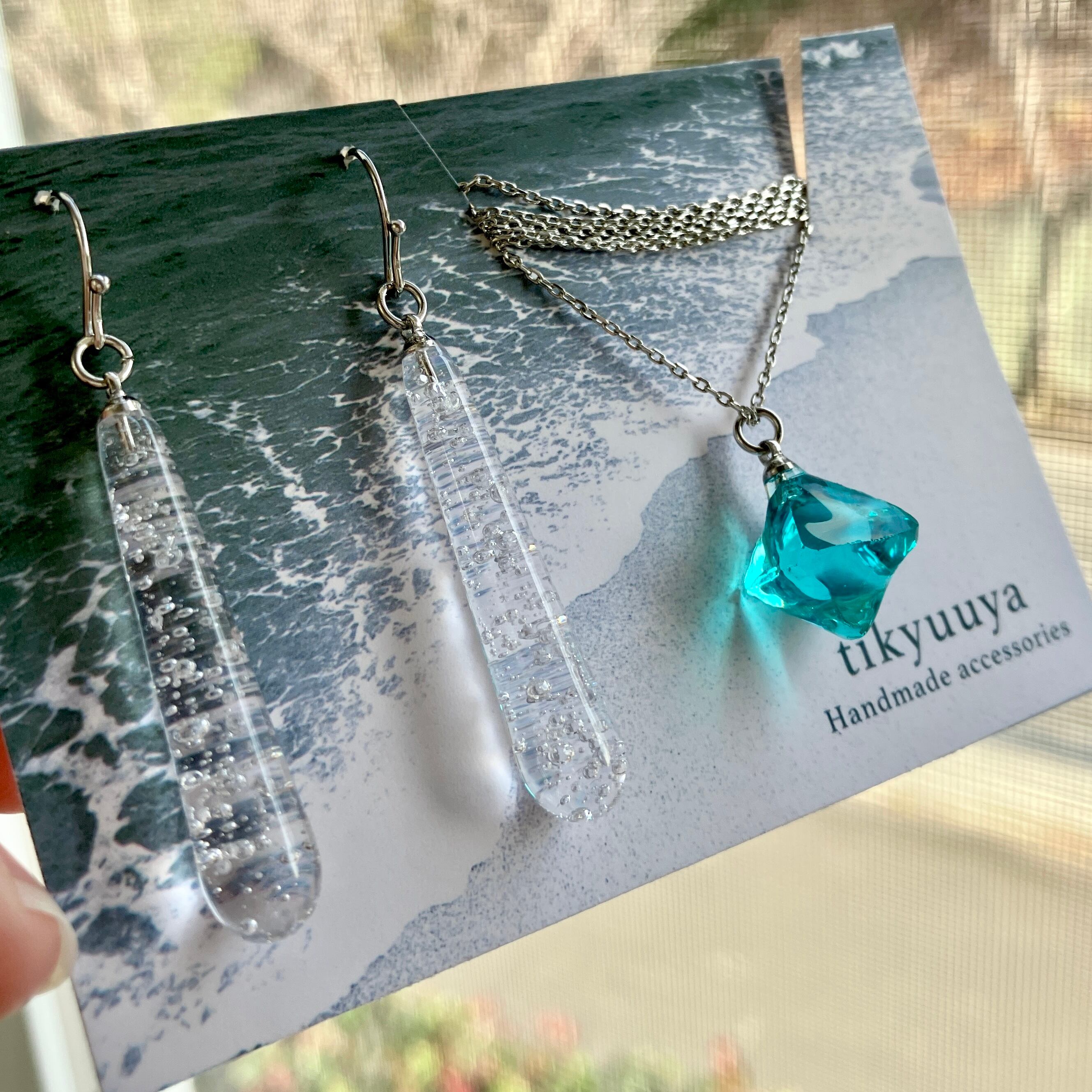 ドロップピアスと鉱石ネックレス 海のかけら