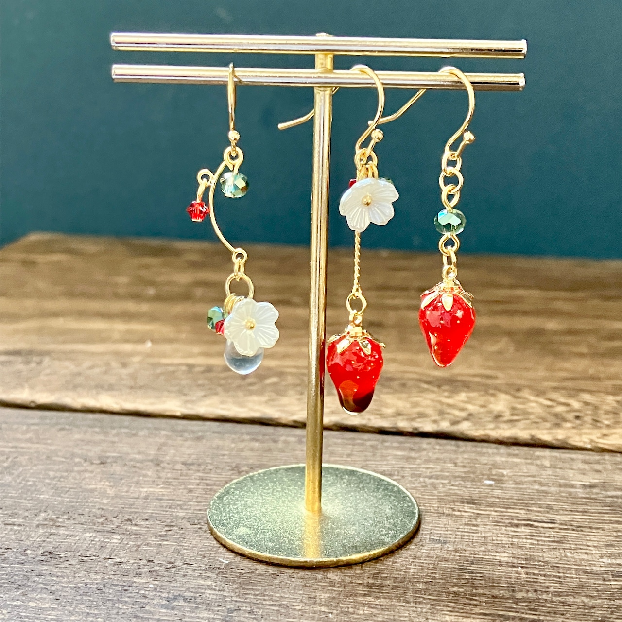 小さな苺の耳飾り。